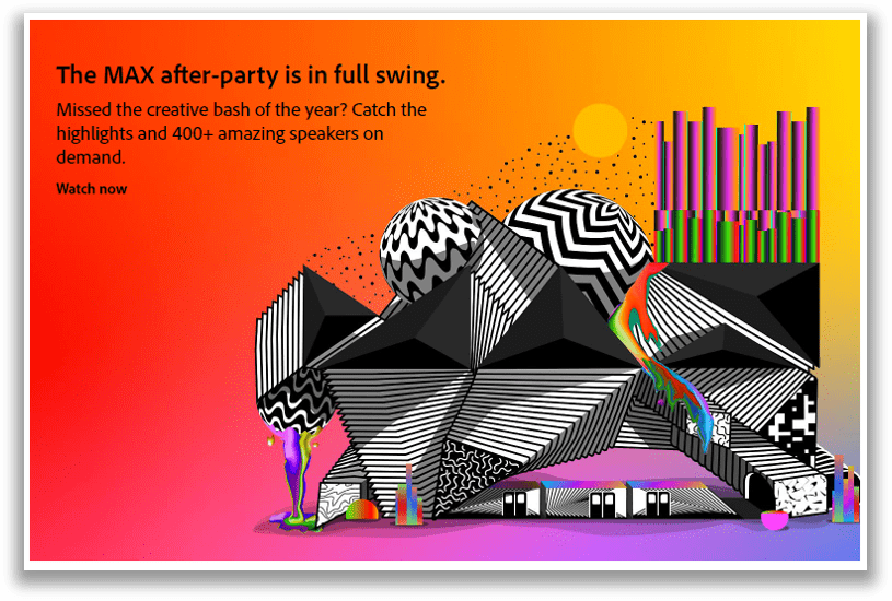 Adobe taps into the creator archetype. The omission of the auxiliary verb and second-person pronoun ‘Have you..’ when the reader is asked ‘Missed the creative bash of the year?’ emphasises the informality of the voice. The after-party metaphor is also cleverly designed to appeal to the creative mindset, offering a sense of inclusivity and belonging — but playing very subtly with the reader’s fear of having missed an opportunity.